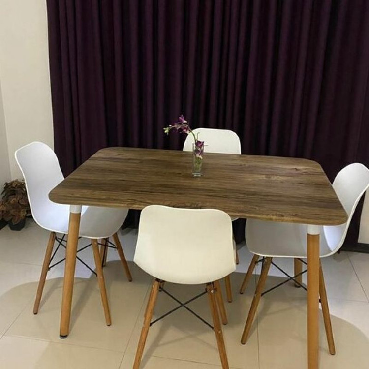 میز و صندلی ناهارخوری چهارنفره فایبر پایه ایفلی میز مستطیل ۱۲۰*۸۰