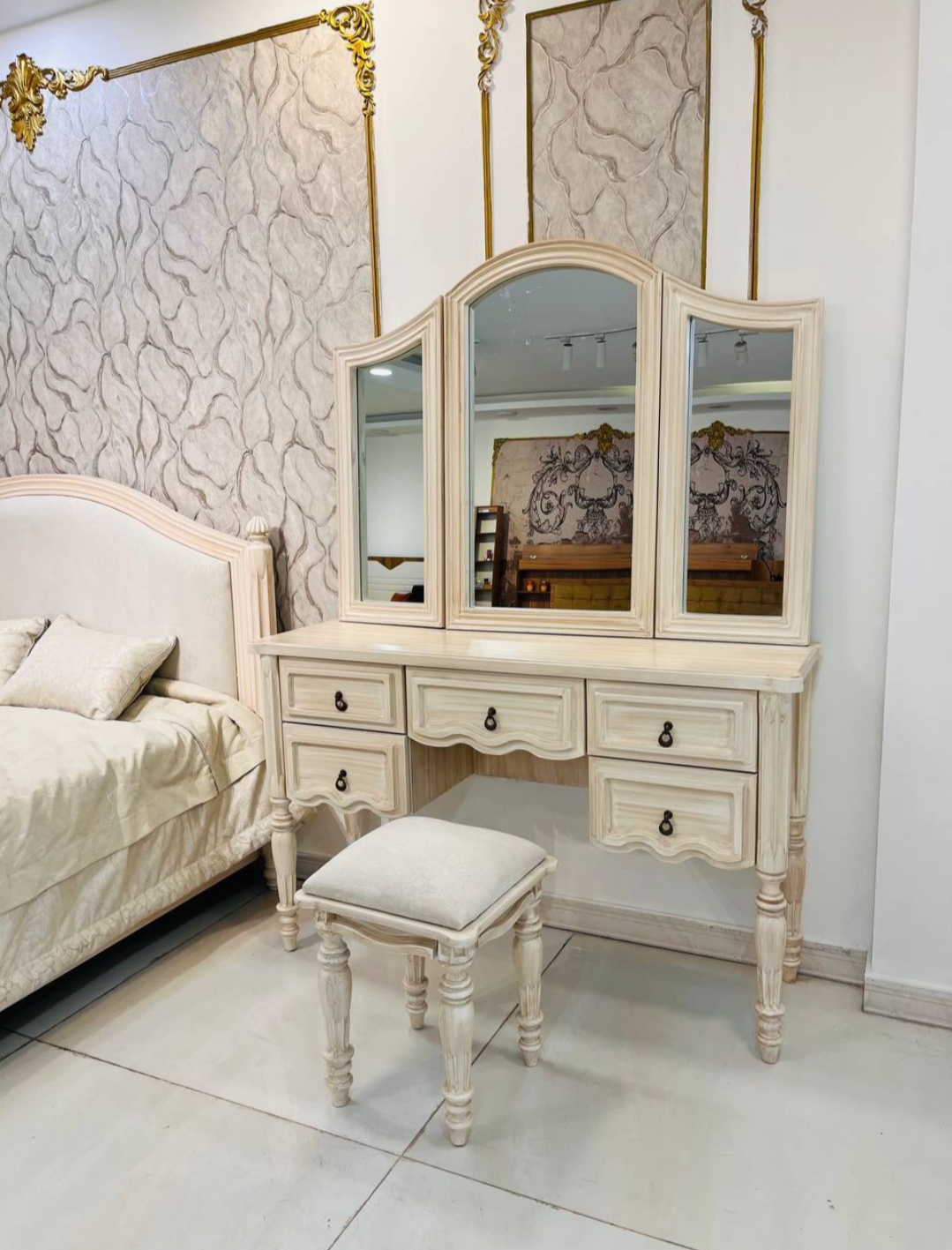 سرویس خواب کویین شامل تخت 160,پاتختی , دراور , میز آرایش آینه و صندلی