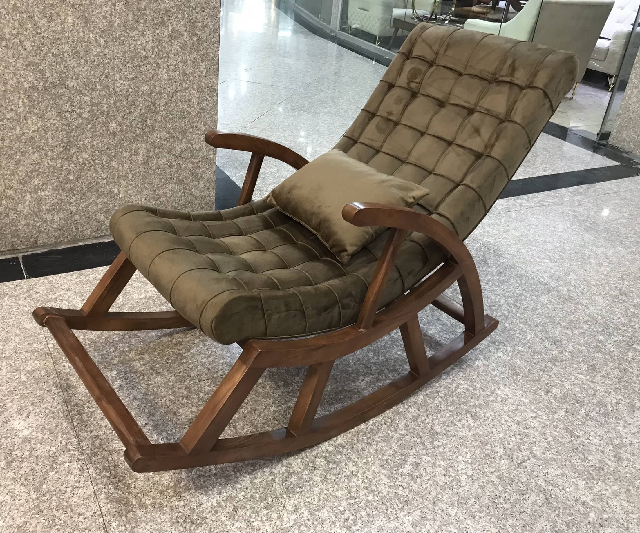 صندلی راک راحتی ساخته شده از چوب توسکا دارای نشیمن راحت و طراحی جذاب و مدرن